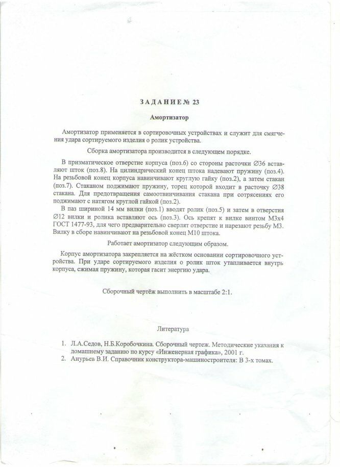 Для студентов МГТУ им. Н.Э.Баумана по предмету Инженерная графикаАмортизаторАмортизатор 2024-10-01СтудИзба