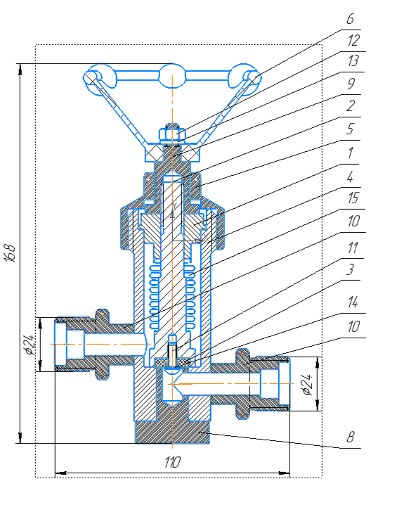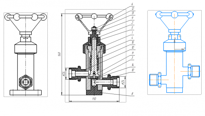 • Чертеж вентиля, 3D-модель и спецификация