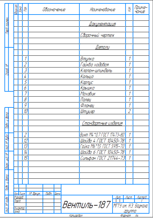 Для студентов МГТУ им. Н.Э.Баумана по предмету Инженерная графикаВентильВентиль