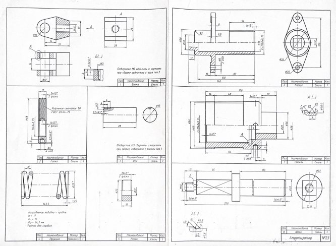 Для студентов МГТУ им. Н.Э.Баумана по предмету Инженерная графикаАмортизатор №23Амортизатор №23