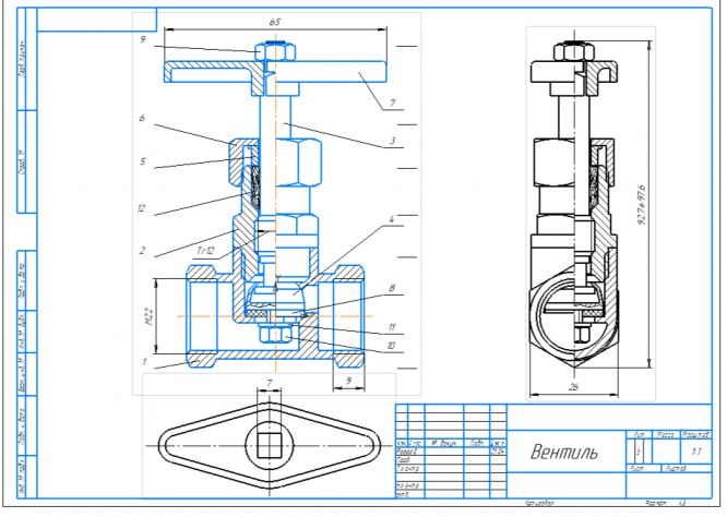 Для студентов МГТУ им. Н.Э.Баумана по предмету Инженерная графикаВентильВентиль
