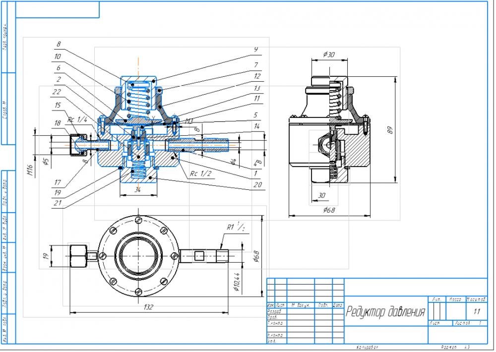 Для студентов МГТУ им. Н.Э.Баумана по предмету Инженерная графикаРедуктор давления воздухаРедуктор давления воздуха
