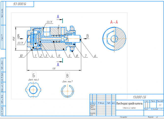 Для студентов МГТУ им. Н.Э.Баумана по предмету Инженерная графикаПневмораспределительПневмораспределитель