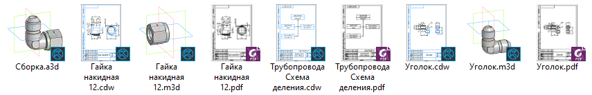 2. Чертеж в формате .cdw (КОМПАС-3D ) (Уголок, накидная гайка, схема деления трубопровода)