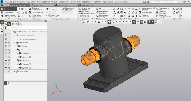- Модели деталей и сборка, выполненные в Компас-3D V21;