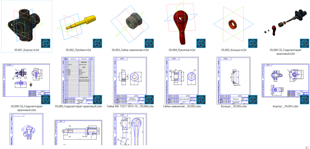 Чертежи всех деталей, сборки, а также 3 д модель Гидроаппарат крановый