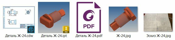 Деталь Ж-24 (Эскиз + Деталь 3Д + Чертеж в КОМПАС)