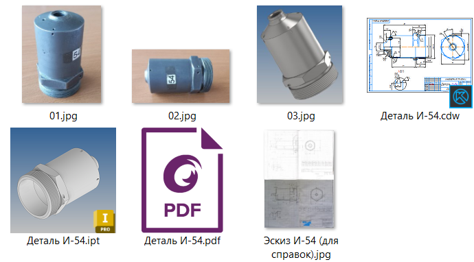 Деталь И-54 (Эскиз + Деталь 3Д + Чертеж в КОМПАС)
