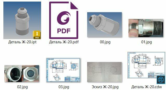 Деталь Ж-20 (Эскиз + Деталь 3Д + Чертеж в КОМПАС)