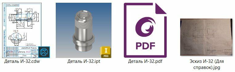 Деталь И-32 (Эскиз + Деталь 3Д + Чертеж в КОМПАС)