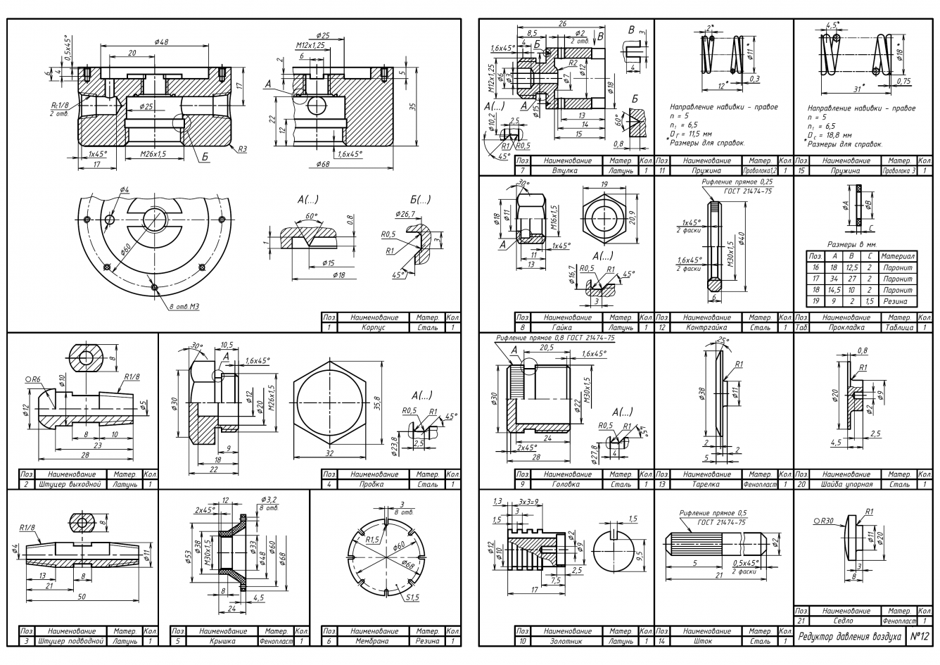Для студентов МГТУ им. Н.Э.Баумана по предмету Инженерная графикаЗадание 12 Редуктор давления воздухаЗадание 12 Редуктор давления воздуха