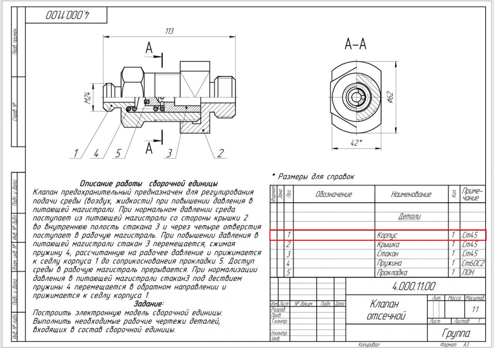ДЗ 1: Клапан отсечной 4.000.11.00 вариант 3