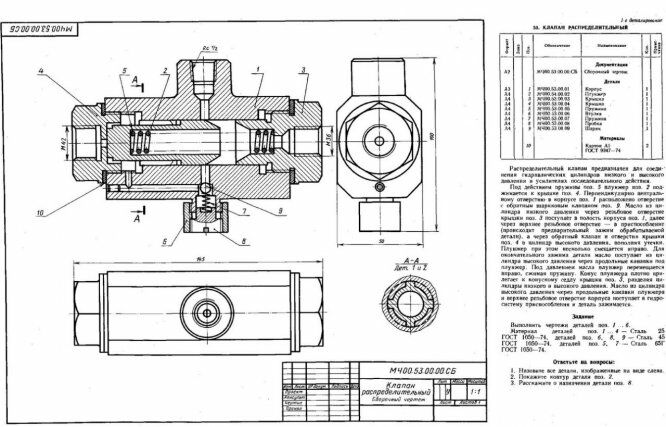 Задание №53 из сборника заданий по деталированию Боголюбова С.К - Клапан распределительный МЧ00.53.00.00
