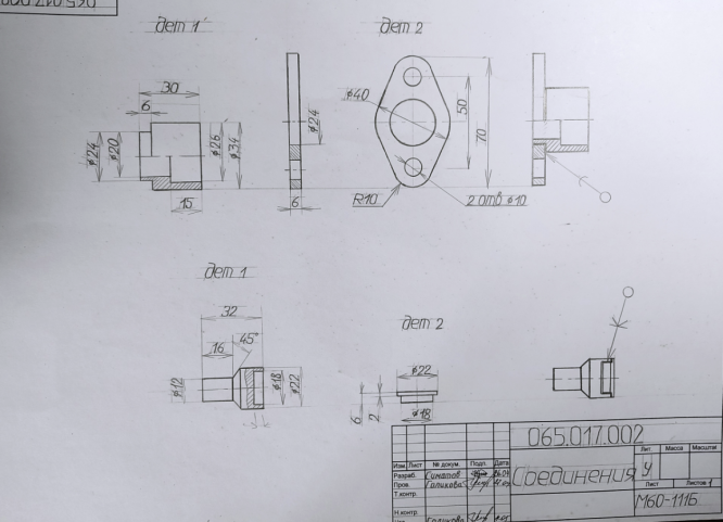 Для студентов МАИ по предмету Инженерная графикаДомашнее задание — чертежи детали и соединенияДомашнее задание — чертежи детали и соединения