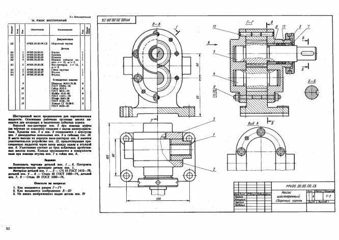 В архиве - модель шестеренного насоса с внешним обратным клапаном. Сделан по чертежу МЧ00.20.00.00 СБ с внесением следующих изменений: