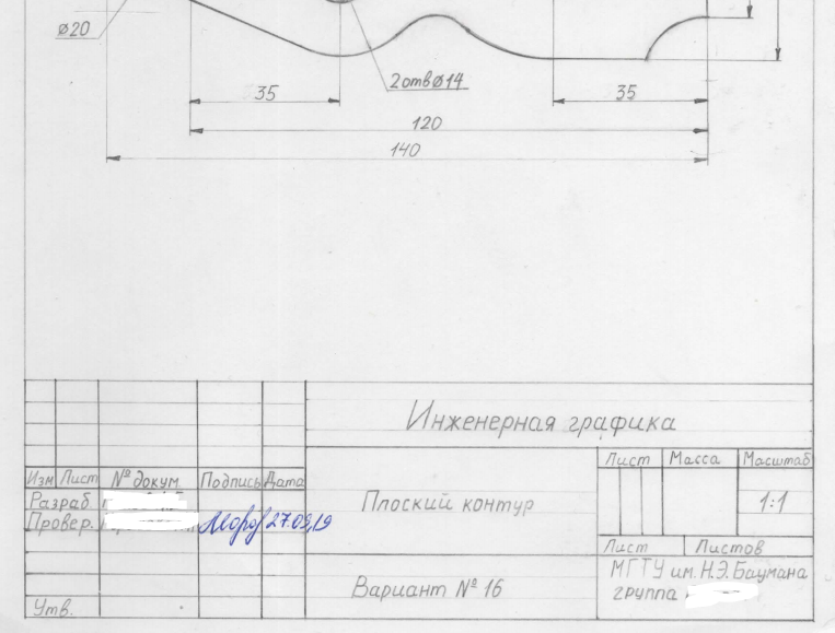 Для студентов МГТУ им. Н.Э.Баумана по предмету Инженерная графикаПлоский контурПлоский контур