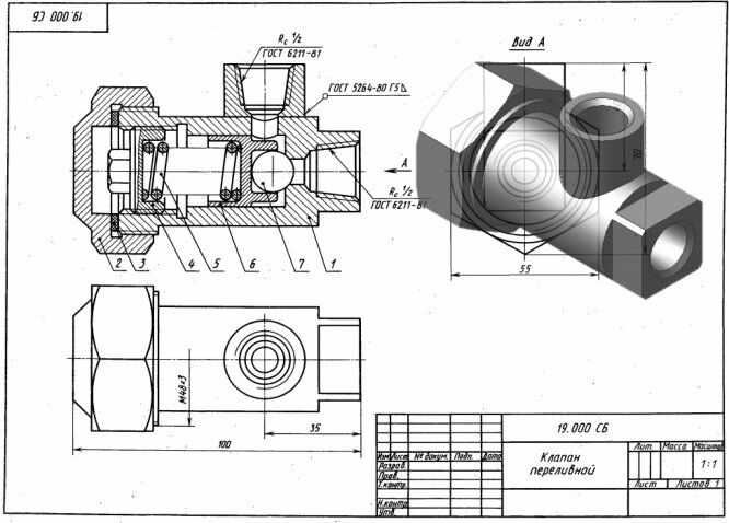 Для студентов по предмету Инженерная графика19.000 Клапан переливной19.000 Клапан переливной