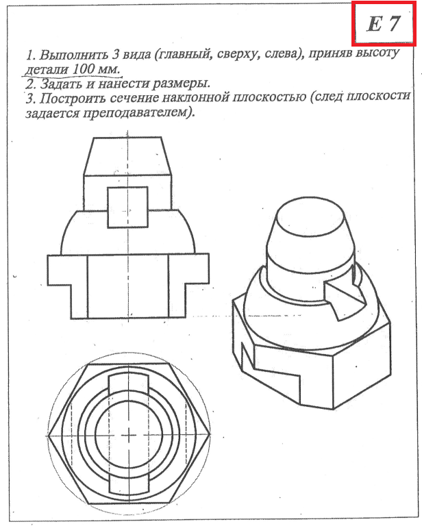Для студентов МАИ по предмету Инженерная графикаДеталь Е-7Деталь Е-7