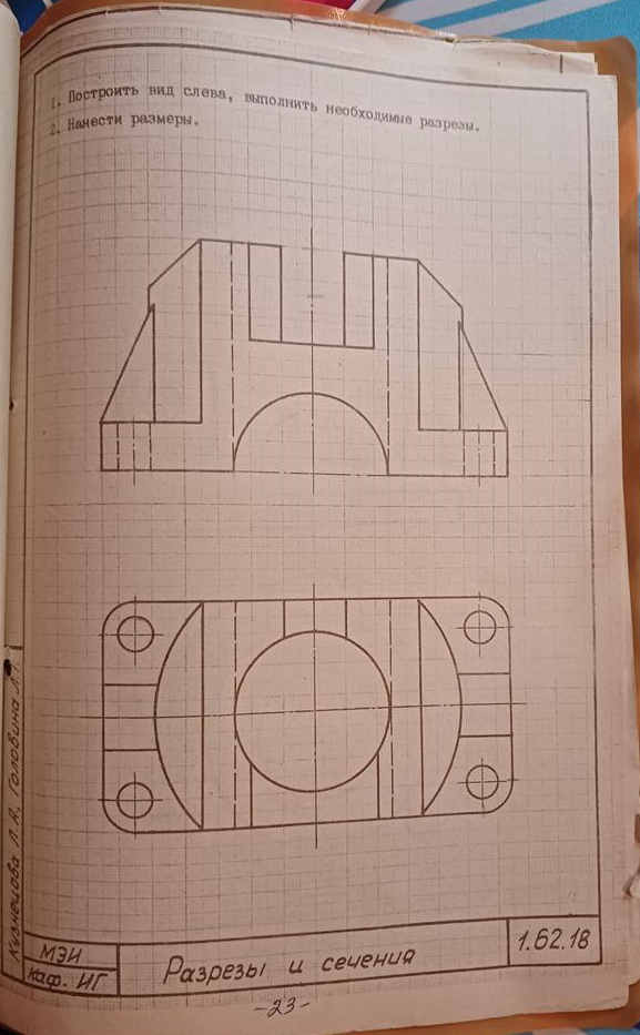 Для студентов НИУ «МЭИ» по предмету Инженерная графикаРазрезы и сечения № 1.62.18Разрезы и сечения № 1.62.18