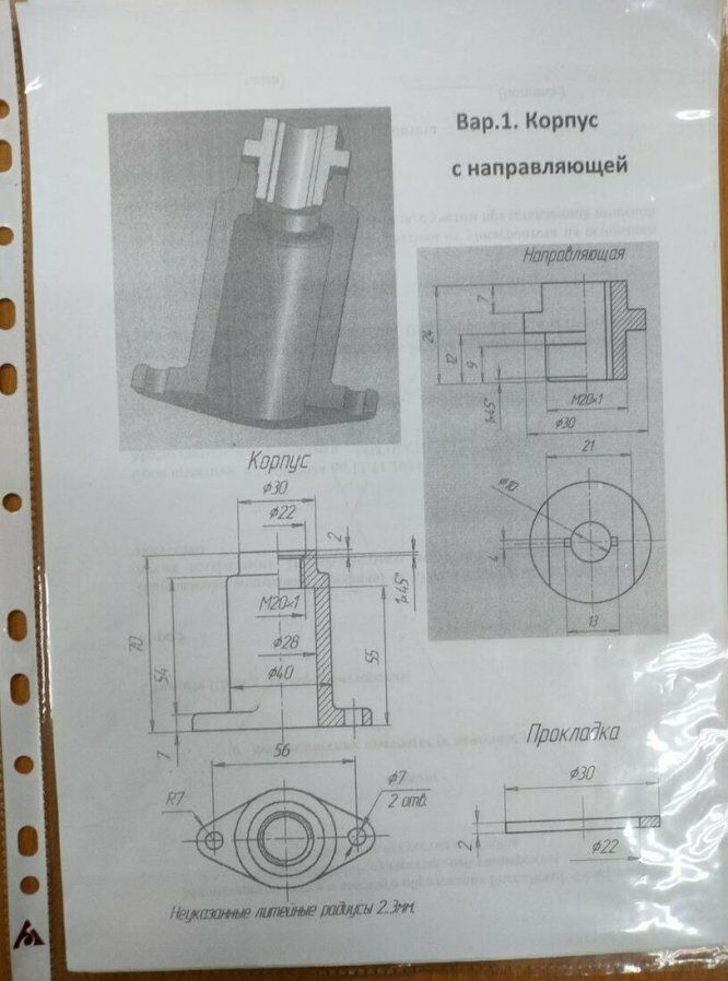 Для студентов МАИ по предмету Инженерная графикаВариант 1 - Корпус с направляющейВариант 1 - Корпус с направляющей