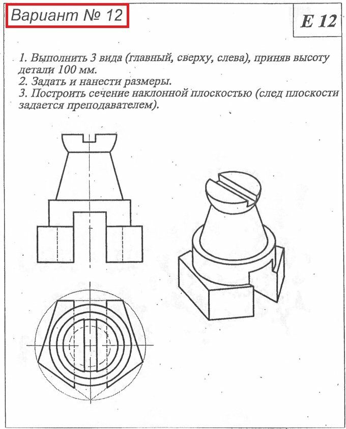 Задача Е: Деталь Е-12 (3Д-модель + Чертёж в КОМПАС 3Д) вариант 12