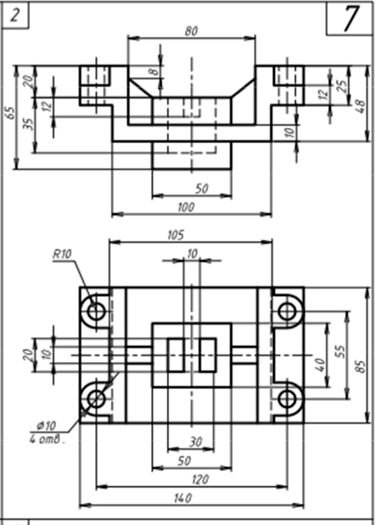 Домашнее задание по курсу "Инженерная графика" для ИУ1, ИУ2, Э3-13.В архиве - трехмерная модель детали и чертеж в формате pdf.