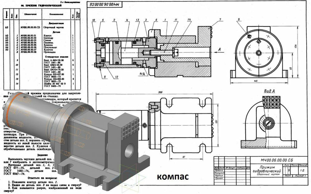 Для студентов по предмету Инженерная графикаПрижим гидравлическийПрижим гидравлический
