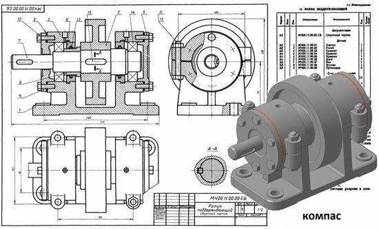 Задание 11 из альбома Чтение и деталирование сборочных чертежей Боголюбова С.К.Все чертежи и 3d модели (все на скриншотах показано и присутствует в архиве) выполнены в КОМПАС 3D. Также открывать и просматривать, печатать чертежи и 3D-модели, выполненные в КОМПАСЕ можно просмоторщиком КОМПАС-3D Viewer.