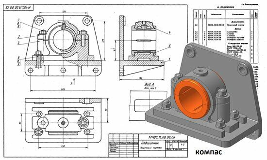 Задание 15 из альбома Чтение и деталирование сборочных чертежей Боголюбова С.К.Все чертежи и 3d модели (все на скриншотах показано и присутствует в архиве) выполнены в КОМПАС 3D. Также открывать и просматривать, печатать чертежи и 3D-модели, выполненные в КОМПАСЕ можно просмоторщиком КОМПАС-3D Viewer.