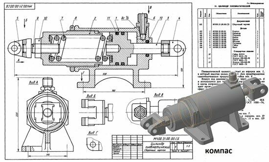 Для студентов по предмету Инженерная графикаЦилиндр пневматический.Цилиндр пневматический.