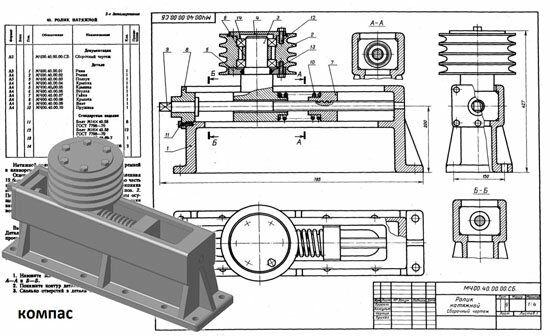 Все чертежи и 3d модели (все на скриншотах показано и присутствует в архиве) выполнены в КОМПАС 3D.Также открывать и просматривать, печатать чертежи и 3D-модели, выполненные в КОМПАСЕ можно просмоторщиком КОМПАС-3D Viewer.
