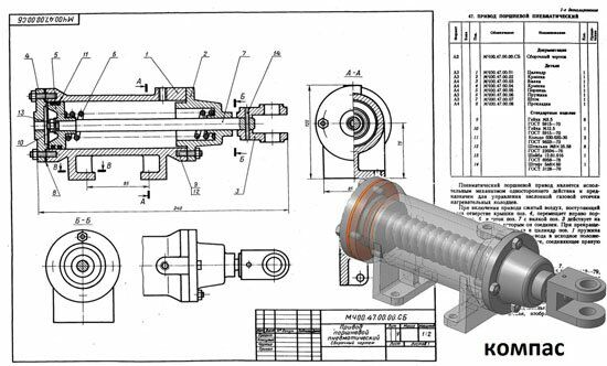 Для студентов по предмету Инженерная графикаПривод поршневой пневматическийПривод поршневой пневматический