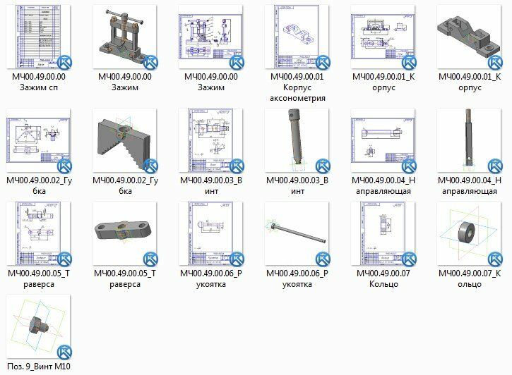 Все чертежи и 3d модели (все на скриншотах показано и присутствует в архиве) выполнены в КОМПАС 3D.Также открывать и просматривать, печатать чертежи и 3D-модели, выполненные в КОМПАСЕ можно просмоторщиком КОМПАС-3D Viewer.