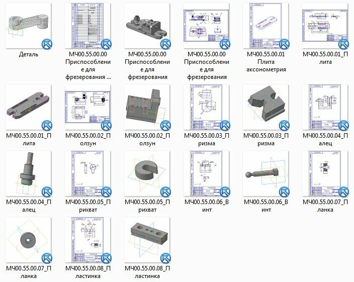 Все чертежи и 3d модели (все на скриншотах показано и присутствует в архиве) выполнены в КОМПАС 3D.Также открывать и просматривать, печатать чертежи и 3D-модели, выполненные в КОМПАСЕ можно просмоторщиком КОМПАС-3D Viewer.