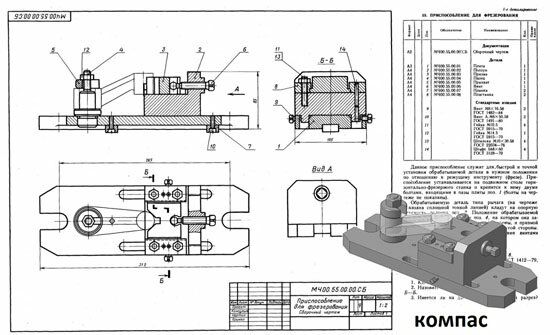 Приспособление для фрезерования МЧ00.55.00.00 спецификация