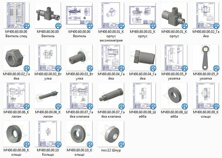 Все чертежи и 3d модели (все на скриншотах показано и присутствует в архиве) выполнены в КОМПАС 3D.Также открывать и просматривать, печатать чертежи и 3D-модели, выполненные в КОМПАСЕ можно просмоторщиком КОМПАС-3D Viewer.