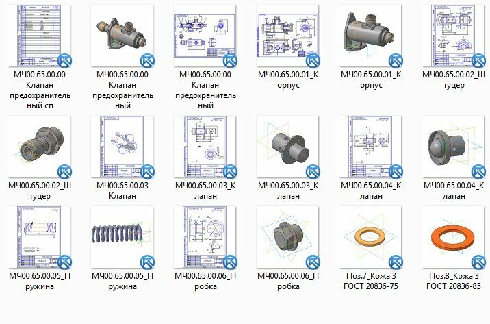 Все чертежи и 3d модели (все на скриншотах показано и присутствует в архиве) выполнены в КОМПАС 3D.Также открывать и просматривать, печатать чертежи и 3D-модели, выполненные в КОМПАСЕ можно просмоторщиком КОМПАС-3D Viewer.