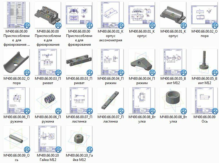 Все чертежи и 3d модели (все на скриншотах показано и присутствует в архиве) выполнены в КОМПАС 3D.Также открывать и просматривать, печатать чертежи и 3D-модели, выполненные в КОМПАСЕ можно просмоторщиком КОМПАС-3D Viewer.