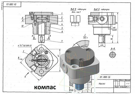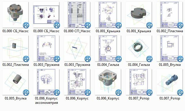Все чертежи и 3d модели (все на скриншотах показано и присутствует в архиве) выполнены в КОМПАС 3D.Также открывать и просматривать, печатать чертежи и 3D-модели, выполненные в КОМПАСЕ можно просмоторщиком КОМПАС-3D Viewer.