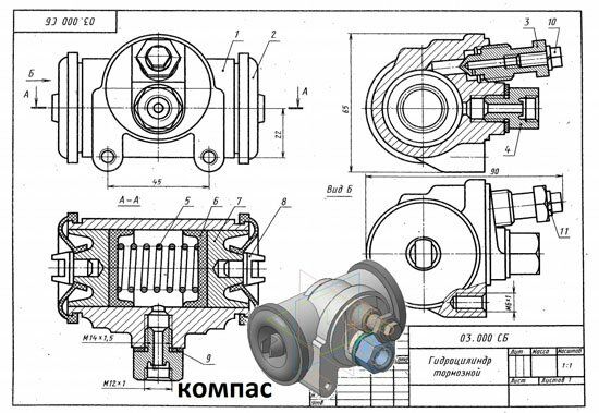 Для студентов по предмету Инженерная графикаГидроцилиндр тормознойГидроцилиндр тормозной