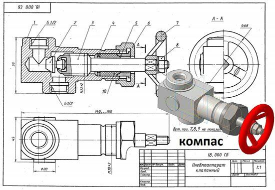 Для студентов по предмету Инженерная графикаПневмоаппарат клапанныйПневмоаппарат клапанный