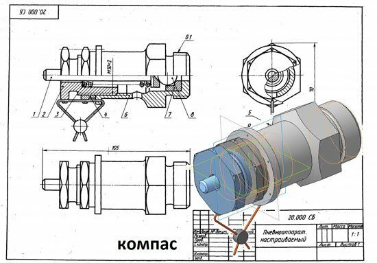 Для студентов по предмету Инженерная графикаПневмоаппарат настраиваемыйПневмоаппарат настраиваемый