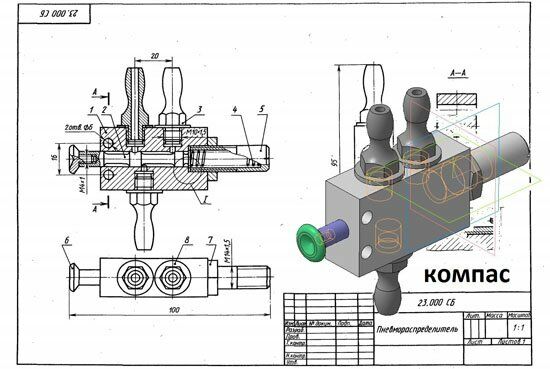 Пневмораспределитель 23.000 сборочный чертеж