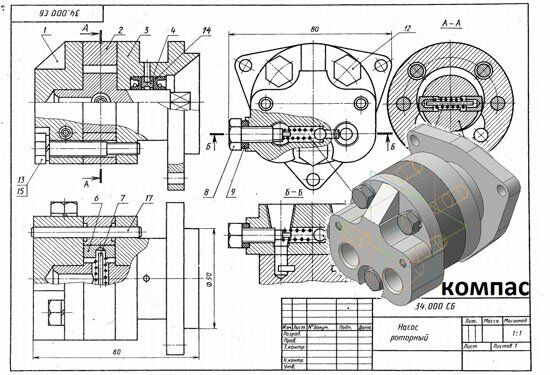 Для студентов по предмету Инженерная графикаНасос роторныйНасос роторный