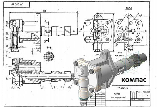 Для студентов по предмету Инженерная графикаНасос шестеренныйНасос шестеренный