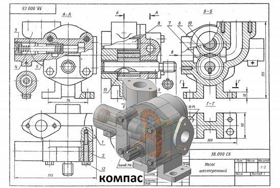 Для студентов по предмету Инженерная графикаНасос шестеренныйНасос шестеренный