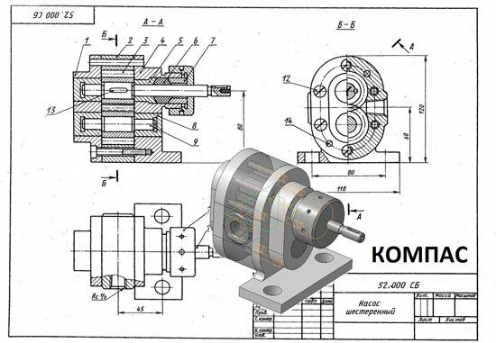 Для студентов по предмету Инженерная графикаНасос шестеренныйНасос шестеренный