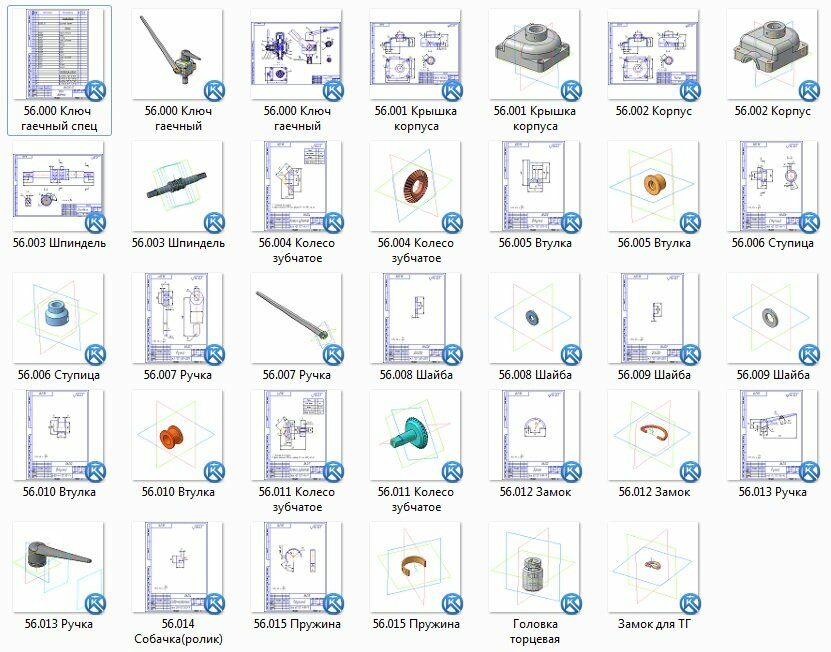 Все чертежи и 3d модели (все на скриншотах показано и присутствует в архиве) выполнены в КОМПАС 3D.Также открывать и просматривать, печатать чертежи и 3D-модели, выполненные в КОМПАСЕ можно просмоторщиком КОМПАС-3D Viewer.