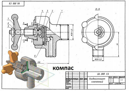 Для студентов по предмету Инженерная графикаПневмоаппарат клапанныйПневмоаппарат клапанный