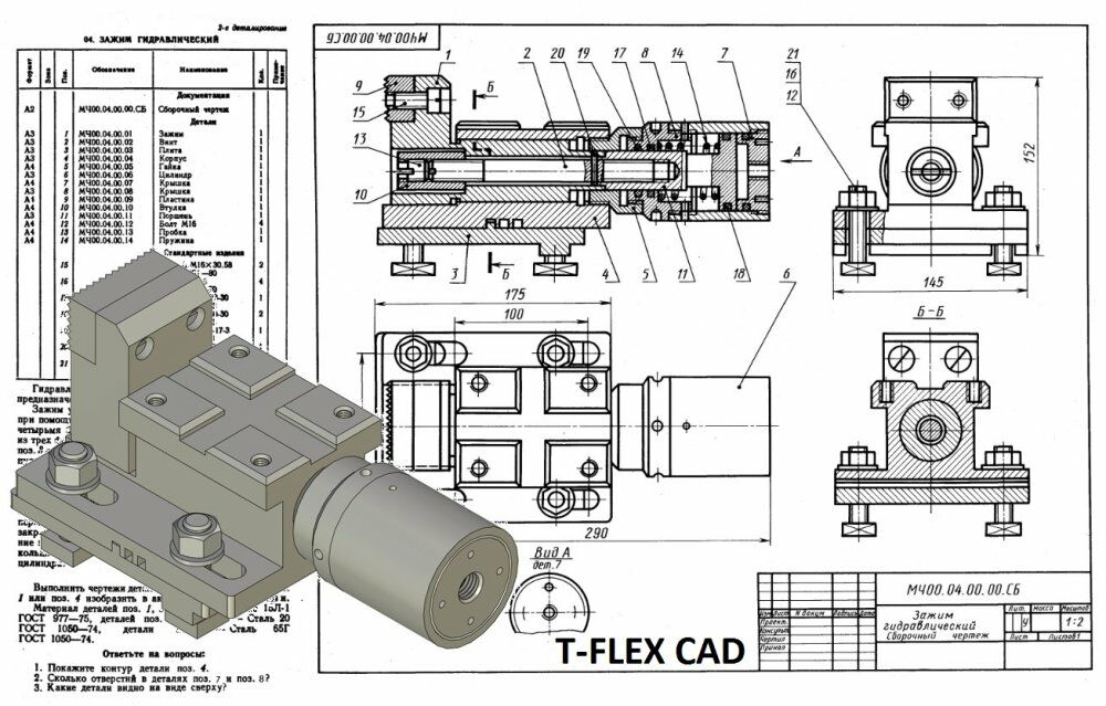 Зажим гидравлический МЧ00.04.00.00 сборочный чертеж T-FLEX CAD